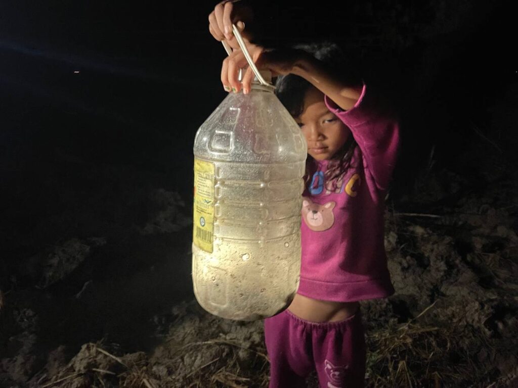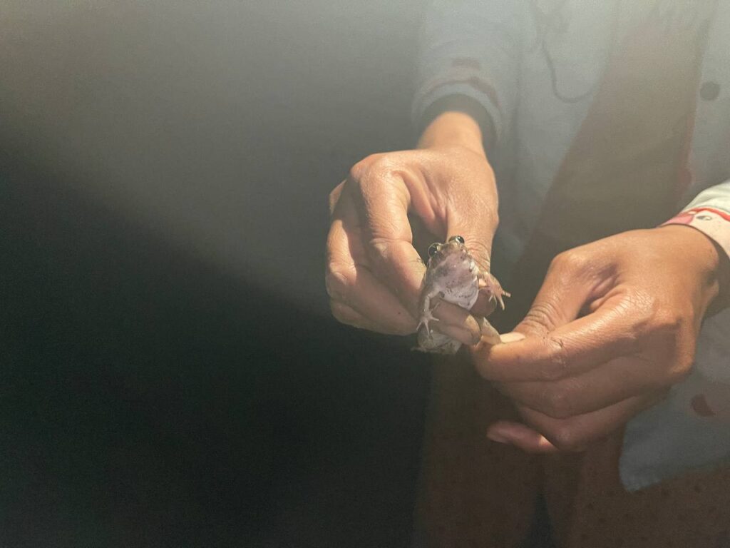 ស្រ្តីរូបនេះបានរៀបរាប់ប្រាប់ថា៖”ចាប់ពីម៉ោង៧ល្ងាចទៅបងប្អូនប្រជាពលរដ្ឋនៅភូមិខ្ញុំបាននាំគ្នាកាន់ពិល ដើរឆ្លុះកង្កែបអាចម៍គោ ។ ឃើញថា ខែនេះ សម្បូរច្រើនណាស់។ ពួកខ្ញុំដើរចាប់ពី ១ម៉ោងដល់២ម៉ោងគឺអាចទុកធ្វើម្ហូបបានមួយពេលឬព្រឹកល្ងាចបានហើយ”។