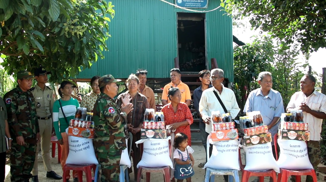 កំពង់ធំ៖ ឧត្តមសេនីយ៍ទោ សោម ស៊ុន ប្រធានសមាគមអតីត យុទ្ធជន កម្ពុជាគ្រួសារខេត្តកំពង់ធំបាននាំអំណោយសម្តេចមហាបវរធិបតី ហ៊ុន ម៉ាណែតនាយករដ្ឋមន្ត្រីនៃព្រះរាជាណាចក្រកម្ពុជា និងលោកជំទាវ បណ្ឌិតទៅចែកជូនគ្រួសារអតីតយុទ្ធជនប្រាំមួយគ្រួសារដែលមានជីវភាពលំបាកនៅភូមិបល្ល័ង្កលិច សង្កាត់ដំរីជាន់ខ្លា ក្រុងស្ទឹងសែន។
