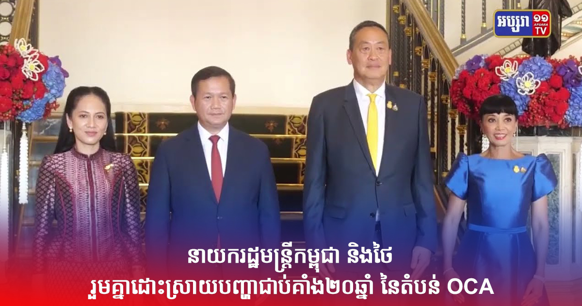 នាយករដ្ឋមន្ត្រីកម្ពុជា និងថៃ បានរួមគ្នាដោះស្រាយបញ្ហាជាប់គាំង២០ឆ្នាំ នៃតំបន់សមុទ្ទត្រួតស៊ីគ្នា OCA ក្នុងដំណើរទស្សនកិច្ចរយៈពេលមួយថ្ងៃ របស់សម្តេចធិបតី ហ៊ុន ម៉ាណែត ក្នុងក្រុងបាងកក។