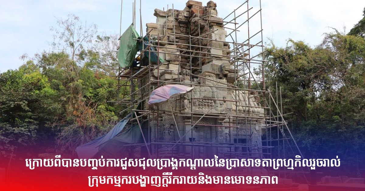 ក្រោយពីបានបញ្ចប់ការជួសជុលប្រាង្គកណ្តាលនៃប្រាសាទតាព្រហ្មកិលរួចរាល់ក្រុមកម្មករបង្ហាញក្តីរីករាយនិងមានមោទនភាព