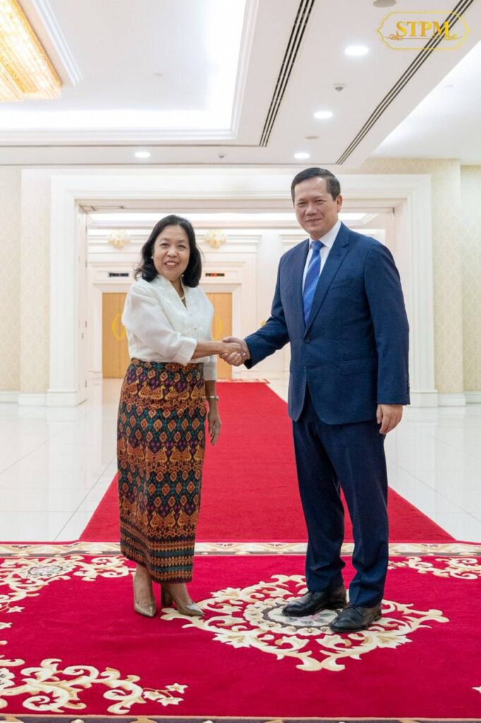 ភ្នំពេញ ៖ លោកជំទាវ ម៉ារៀ អាមេលីតា ស៊ី អាគីណូ (Maria Amelita C. Aquino) ឯកអគ្គរដ្ឋទូត នៃសាធារណរដ្ឋហ្វីលីពីន ប្រចាំព្រះរាជាណាចក្រកម្ពុជា កោតសរសើរកម្ពុជាក្នុងការរួមចំណែកដ៏ធំធេងក្នុងបេសកកម្មថែរក្សាសន្តិភាពពិភពលោក តាមរយ:ការបញ្ជូនកងកម្លាំងរក្សាសន្តិភាពក្រោមឆ័ត្រអង្គការសហប្រជាជាតិ។ ហើយកោតសរសើរចំពោះភាពជោគជ័យនៃការរៀបចំកិច្ចប្រជុំកំពូលអាស៊ាន និងកិច្ចប្រជុំពាក់ព័ន្ធ ព្រឹត្តិការណ៍ស៊ីហ្គេមលើកទី៣២ (32nd SEA Games) និងអាស៊ានប៉ារ៉ាហ្គេមលើកទី១២ (12th ASEAN Para Games) ។ ការកោតសរសើរនេះ ក្នុងជំនួបសម្តែងការគួរសម និងជម្រាបលា ជាមួយសម្តេចមហាបវរធិបតី ហ៊ុន ម៉ាណែត នាយករដ្ឋមន្រ្តី នៃព្រះរាជាណាចក្រកម្ពុជា នាព្រឹកថ្ងៃទី១៦ ខែកុម្ភៈ ឆ្នាំ២០២៤ ។