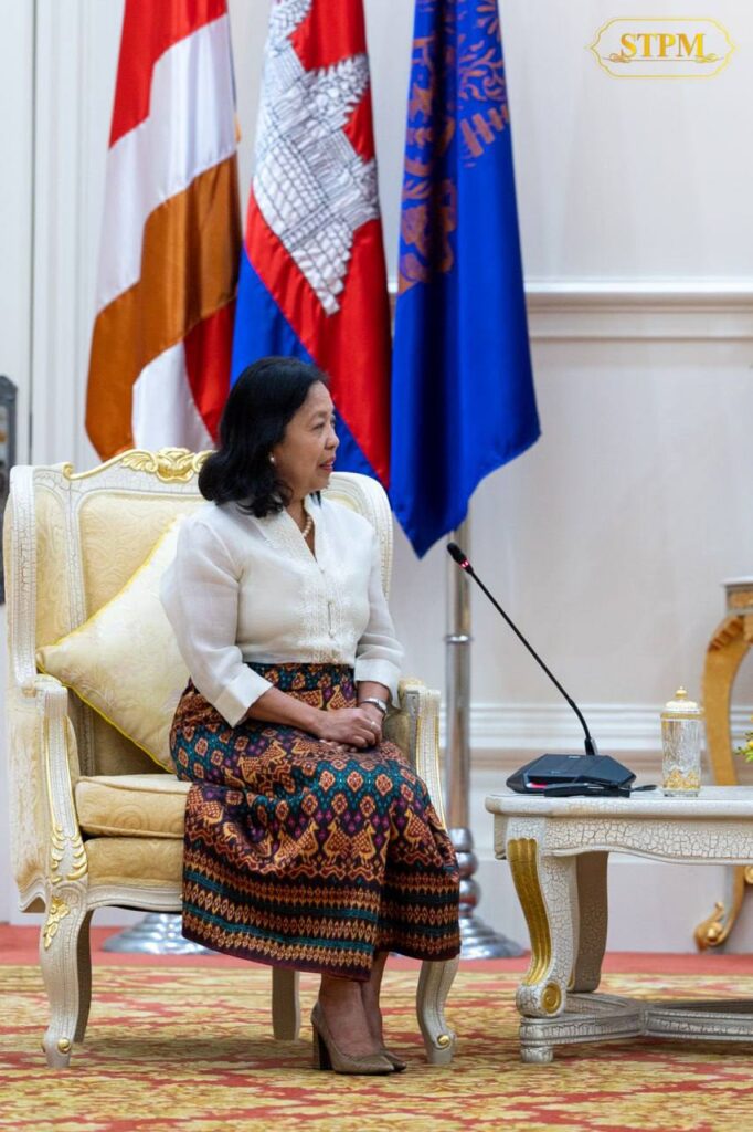 ទន្ទឹមនឹងនោះ លោកជំទាវក៏បានជម្រាបជូន សម្តេចធិបតី ផងដែរអំពីការបំពេញបេសកកម្មការទូត និងការសម្រេចបាននូវសមិទ្ធផលជាច្រើននៅក្នុងទំនាក់ទំនងនៃកិច្ចសហប្រតិបត្តិការរវាងប្រទេសទាំងពីរក្នុងអាណត្តិការទូតរបស់លោកជំទាវ ជាពិសេស វិស័យពាណិជ្ជកម្ម ការនាំចេញអង្ករពីកម្ពុជា ទៅកាន់ប្រទេសហ្វីលីពីន ការលើកកម្ពស់ នៃការភ្ជាប់ទំនាក់ទំនងរវាងប្រជាជននិងប្រជាជន កិច្ចសហប្រតិបត្តិការលើវិស័យដោះមីន ទេសចរណ៍ ក៏ដូចជាវិស័យការពារជាតិរវាងកងទ័ព និងកងទ័ព និងការផ្សារភ្ជាប់ទំនាក់ទំនងរវាងធុរកិច្ចនៃប្រទេសកម្ពុជា-ហ្វីលីពីន ផងដែរ។