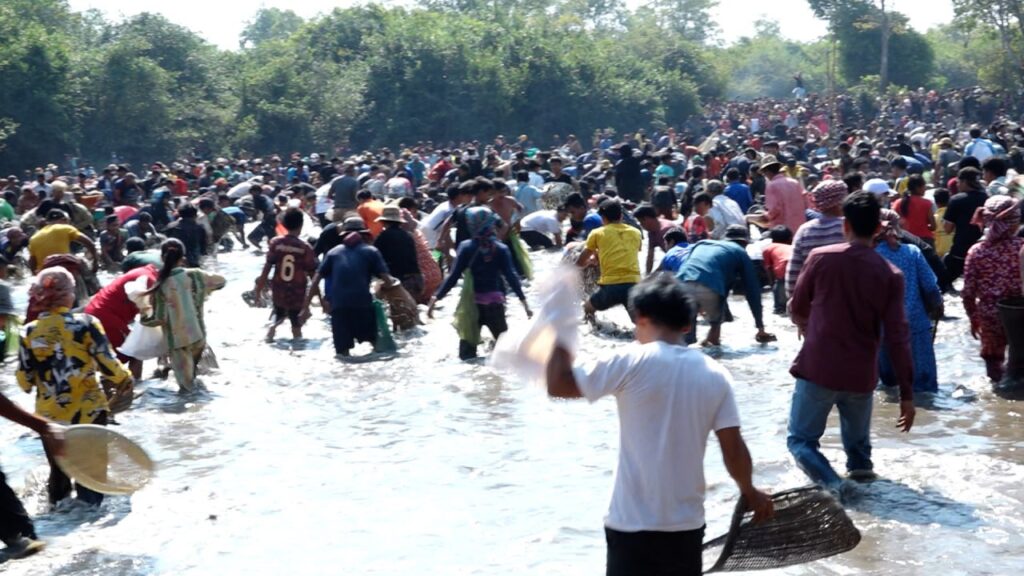 ប្រជាពលរដ្ឋប្រមាណជិតដប់ម៉ឺននាក់ចូលរួមពិធីចាប់ត្រីបឹងត្រពាំងក្រម ខេត្តត្បូងឃ្មុំ