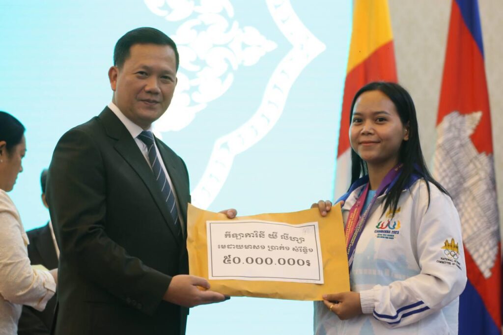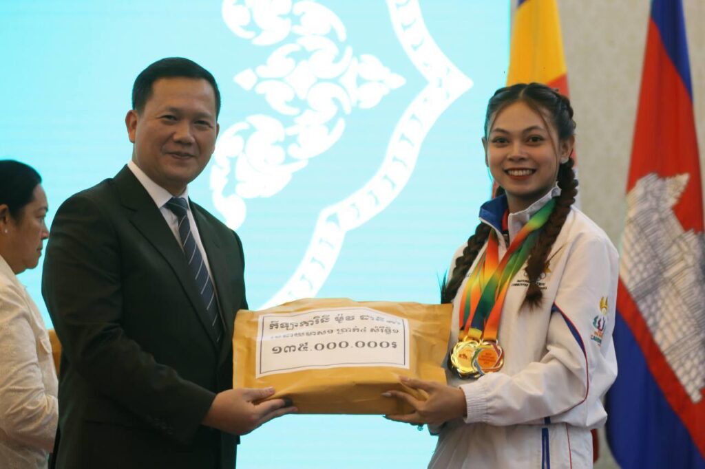 សម្តេចធិបតី ហ៊ុន ម៉ាណែត អញ្ជើញប្រគល់ប្រាក់រង្វាន់ ជ័យលាភី ជូនកីឡាករ-កីឡាការិនី ក្នុងការប្រកួតកីឡាជ្រើសរើសជើងឯក ជា លក្ខណៈអន្តរជាតិ
