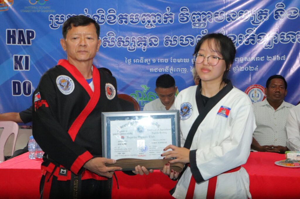 ព្រឹទ្ធាចារ្យបានលើកឡើងដូច្នេះ ក្នុងពិធីប្រគល់ជូនលិខិត បញ្ជាក់ វិញ្ញាបនបត្រ និងសញ្ញាបត្រខ្សែក្រវាត់ខ្មៅចំនួន២៣នាក់ កាលពី ល្ងាច ថ្ងៃទី២៥ ខែកុម្ភៈ ឆ្នាំ២០២៤ នៅសាលហ្វឹកហាត់នៃពហុ កីឡដ្ឋាន ជាតិអូឡាំពិក ។