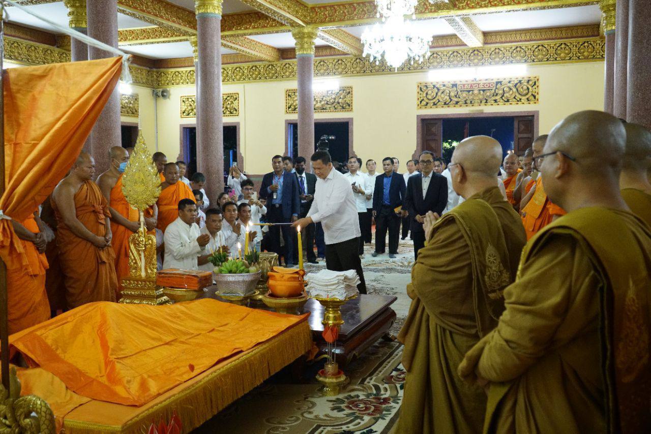 ភ្នំពេញៈនារាត្រីថ្ងៃទី២៦ ខែកុម្ភៈ ឆ្នាំ២០២៤មសម្តេចធិបតីនាយករដ្ឋមន្ត្រី បានអញ្ជើញទៅគោរពព្រះវិញាណក្ខន្ធសម្តេចព្រះអគ្គមហាសង្ឃរាជាធិបតី កិត្តិឧទេ្ទសបណ្ឌិត ទេព វង្ស រួមជាមួយនឹងការឧទ្ទិសទ្វាយបួងសួងដល់ព្រះវិញាណក្ខន្ធសម្តេច បានស្តេចយាងទៅកាន់ស្ថានបរមសុខ ព្រះនិព្វានកុំបីឃ្លាតឡើយ។