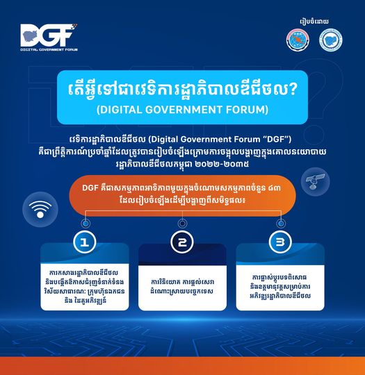 គួរបញ្ជាក់ថា វេទិការដ្ឋាភិបាលឌីជីថល (Digital Government Forum “DGF”) គឺជាព្រឹត្តិការណ៍ប្រចាំឆ្នាំដែលត្រូវបានរៀបចំឡើងក្រោមការចង្អុលបង្ហាញក្នុងគោលនយោបាយរដ្ឋាភិបាលឌីជីថលកម្ពុជា ២០២២-២០៣៥។ DGF គឺជាសកម្មភាពអាទិភាពមួយក្នុងចំណោមសកម្មភាពចំនួន ៨៣ ដែលរៀបចំឡើងដើម្បីបង្ហាញពីសមិទ្ធផលការកសាងរដ្ឋាភិបាលឌីជីថល និងបង្កើតឱកាសជំរុញទំនាក់ទំនងវិស័យសាធារណៈ ក្រុមហ៊ុនឯកជន និងដៃគូអភិវឌ្ឍន៍ សម្រាប់ការវិនិយោគ ការផ្តល់សេវា និងដំណោះស្រាយបច្ចេកទេស ការផ្លាស់ប្តូរបទពិសោធ និងឧត្តមានុវត្តសម្រាប់ការអភិវឌ្ឍរដ្ឋាភិបាលឌីជីថល៕