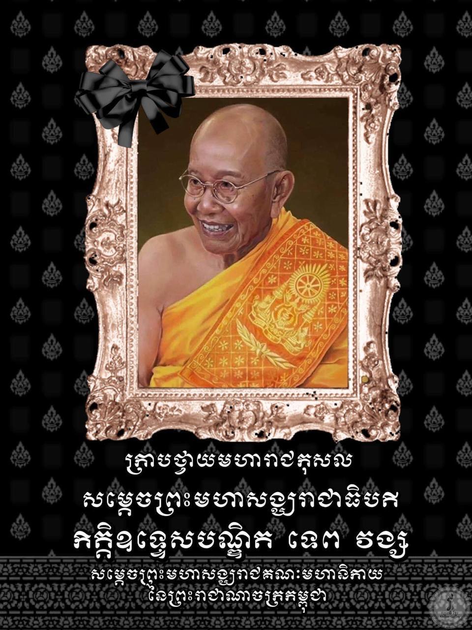 រដ្ឋបាលរាជធានីភ្នំពេញ សូមជម្រាបជូនដំណឹងដល់បងប្អូនប្រជាពលរដ្ឋទាំងអស់ឱ្យបានជ្រាបថា សម្តេចព្រះអគ្គមហាសង្ឃរាជាធិបតី កិត្តិឧទ្ទេសបណ្ឌិត ទេព វង្ស សម្ដេចព្រះមហាសង្ឃរាជ នៃព្រះរាជា ណាចក្រកម្ពុជា បានយាងចូលទិវង្គតនៅថ្ងៃចន្ទ ២រោច ខែមាឃ ឆ្នាំថោះ បញ្ចស័ក ព.ស.២៥៦៧ ត្រូវនឹង ថ្ងៃទី២៦ ខែកុម្ភៈ ឆ្នាំ២០២៤ វេលាម៉ោង ១៧:៤០នាទី ។
