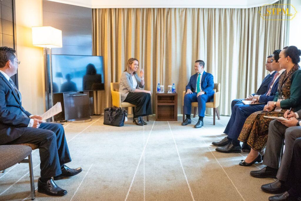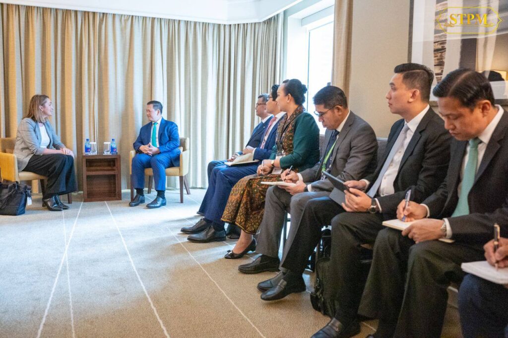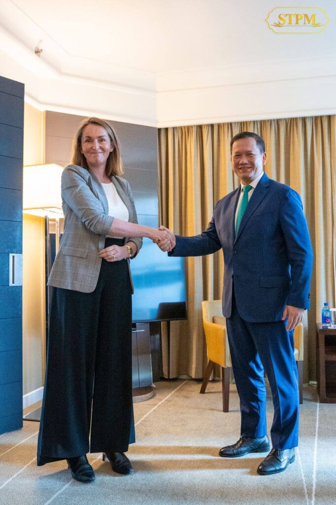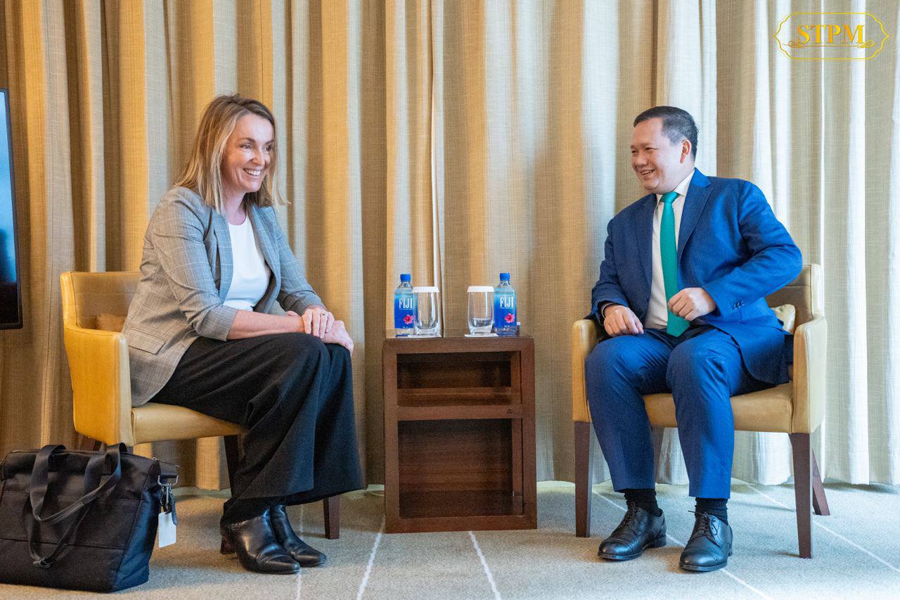 (ភ្នំពេញ)៖ សម្តេចមហាបវរធិបតី ហ៊ុន ម៉ាណែត នាយករដ្ឋមន្រ្តី នៃព្រះរាជាណាចក្រកម្ពុជា បានអនុញ្ញាតឱ្យ លោកស្រី Tennealle O’Shannessy នាយកប្រតិបត្តិ IDP Education ចូលជួបសម្តែងការគួរសម និងពិភាក្សាការងារ ក្នុងឱកាសចូលរួមកិច្ចប្រជុំកំពូលពិសេស អាស៊ាន-អូស្រ្តាលី នៅទីក្រុងម៉ែលប៊ន ប្រទេសអូស្ត្រាលី នាព្រឹកថ្ងៃទី៣ ខែមីនា ឆ្នាំ២០២៤ ។