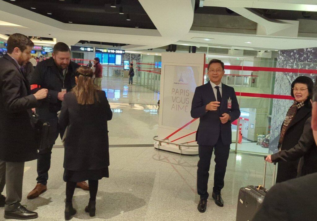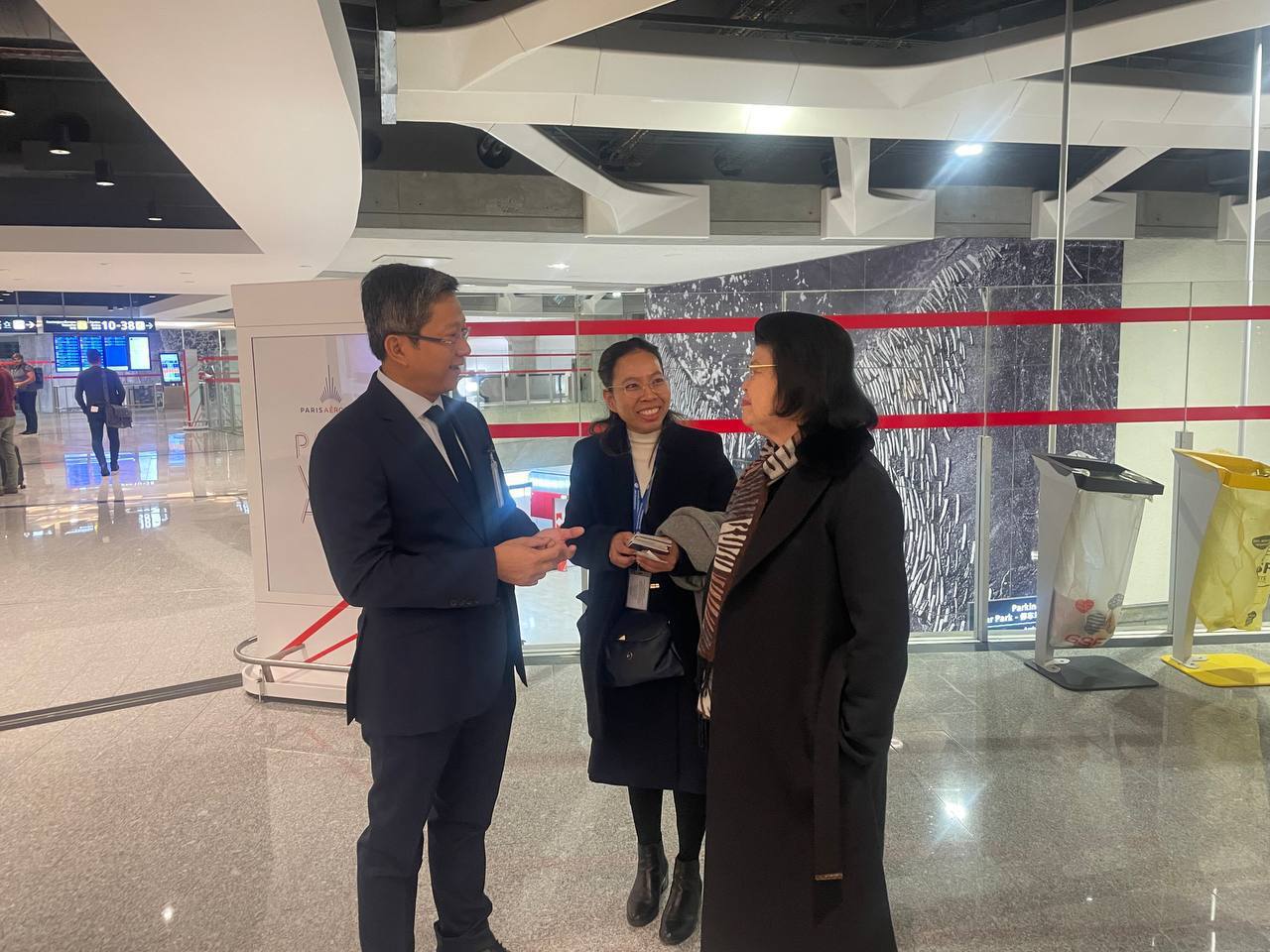 នៅអាកាសយានដ្ឋានអន្តរជាតិនាទីក្រុងប៉ារីស គណៈប្រតិភូរដ្ឋសភាកម្ពុជា បានទទួលការស្វាគមន៍យ៉ាងកក់ក្តៅពីសមភាគីបារាំង ថ្នាក់ដឹកនាំនិងមន្រ្តីស្ថានទូតព្រះរាជាណាចក្រកម្ពុជា ប្រចាំនៅសាធារណរដ្ឋបារាំងជាច្រើនរូប ដែលក្នុងនោះ មានវត្តមាន ឯកឧត្តម លុយ ដាវីត ឯកអគ្គរាជទូតនៃព្រះរាជាណាចក្រកម្ពុជា ប្រចាំសាធារណរដ្ឋបារាំង ព្រមទាំងសហការី។
