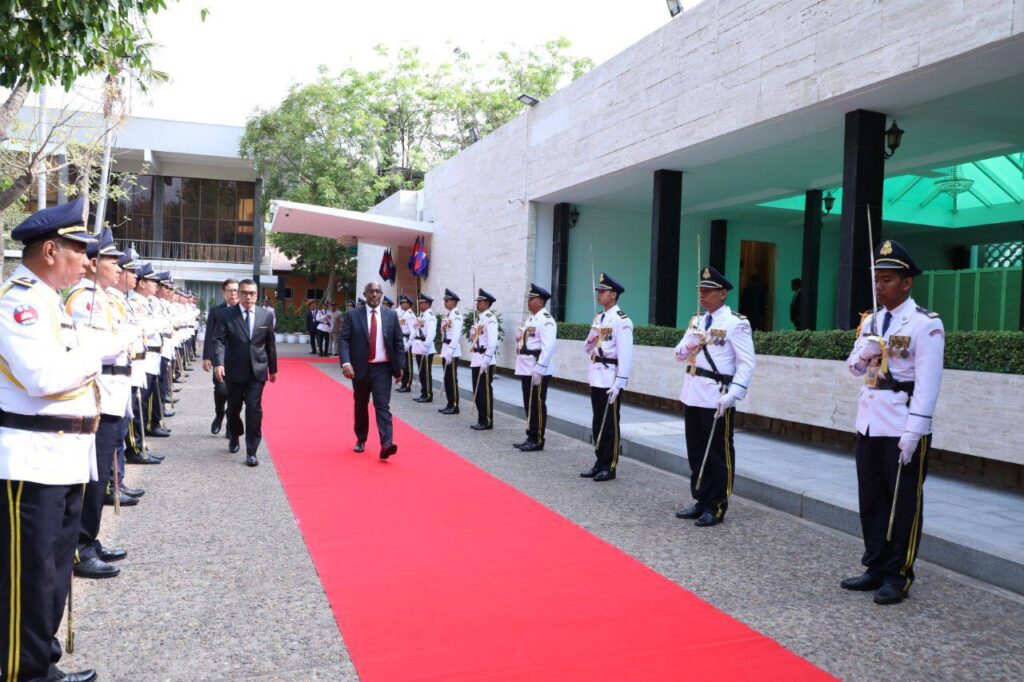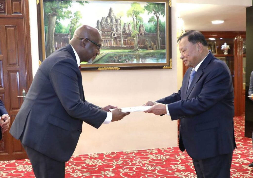 ភ្នំពេញ៖ ក្នុងឱកាសសម្តេចវិបុលសេនាភក្តី សាយ ឈុំ ប្រមុខរដ្ឋស្តីទី នៃព្រះរាជាណាចក្រកម្ពុជា អនុញ្ញាតឱ្យ ឯកឧត្ដម Nkubito Manzi BAKURAMUTSA ឯក អគ្គរដ្ឋទូតតែងតាំងថ្មី នៃសាធារណរដ្ឋរវ៉ាន់ដា ចូលជូនសារតាំង និងសម្តែងការគួរសម នៅវិមានព្រឹទ្ធសភា នាព្រឹកថ្ងៃទី១៣ ខែមីនា ឆ្នាំ២០២៤ ថ្នាក់ដឹកនាំទាំង២ កម្ពុជា សាធារណរដ្ឋវ៉ាន់ដា ប្តេជ្ញាបន្តពង្រឹងពង្រីកលើកកម្ពស់ទំនាក់ទំនងមិត្តភាព និងកិច្ចសហប្រតិបត្តិការ លើគ្រប់វិស័យឲ្យកាន់តែជិតស្និតបន្ថែមទៀត ។