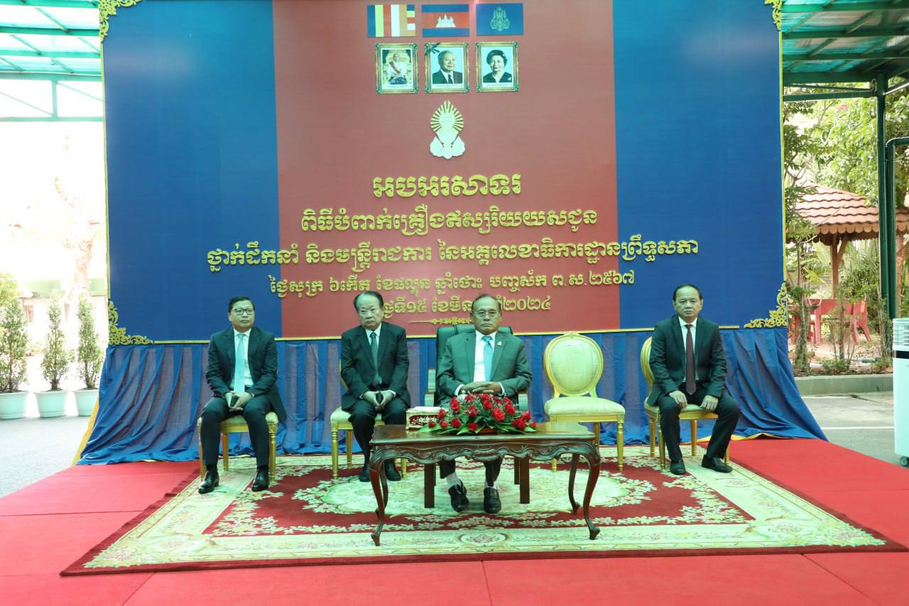 (ភ្នំពេញ)៖ ថ្នាក់ដឹកនាំ និងមន្ត្រីរាជការ នៃអគ្គលេខាធិការដ្ឋានព្រឹទ្ធសភា ដែលមានស្នាដៃការងារប្រចាំឆ្នាំ២០២២ និងឆ្នាំ២០២៣ ចំនួន២២៨រូប ត្រូវបានបំពាក់គ្រឿងឥស្សរិយយស និងមេដាយការងារ នាព្រឹកថ្ងៃសុក្រ ទី១៥ ខែមីនា ឆ្នាំ២០២៤ ក្រោមអធិបតីភាពដ៏ខ្ពង់ខ្ពស់របស់ឯកឧត្តមកិត្តិសង្គហបណ្ឌិត ទេព ងន អនុប្រធានទី២ព្រឹទ្ធសភា នាព្រឹកថ្ងៃសុក្រ ទី១៥ ខែមីនា ឆ្នាំ២០២៤ នៅវិមានព្រឹទ្ធសភា។