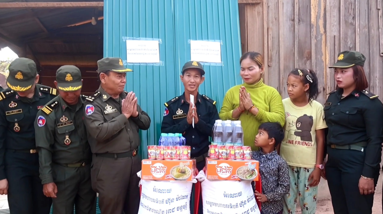 ក្នុងឱកាសនេះលោកអនុសេនីយ៍ត្រី ហុង គឹមហួន និងក្រុមគ្រួសារ បានសូមគោរពថ្លែងអំណរគុណដ៏ជ្រាលជ្រៅជាទីបំផុត ចំពោះសម្ដេចធិបតី ហ៊ុន ម៉ាណែត និងលោកជំទាវបណ្ឌិត ពេជ ចន្ទមុន្នី ព្រមទាំងឧត្តមសេនីយ៍ទោ សោម ស៊ុន មេបញ្ជាការតំបន់ប្រតិបត្តិការសឹករងកំពង់ធំ និងសហការី នៃផ្នែកគិលានដ្ឋាន និងសុខាភិបាល ដែលមាននាំយកថវិកា ស័ង្កសីនិងគ្រឿងឧបភោគបរិភោគ មកជួយឧបត្ថម្ភដល់រូបគាត់ ដែលមានជម្រកស្នាក់នៅមិនសមរម្យនៅពេលនេះ៕