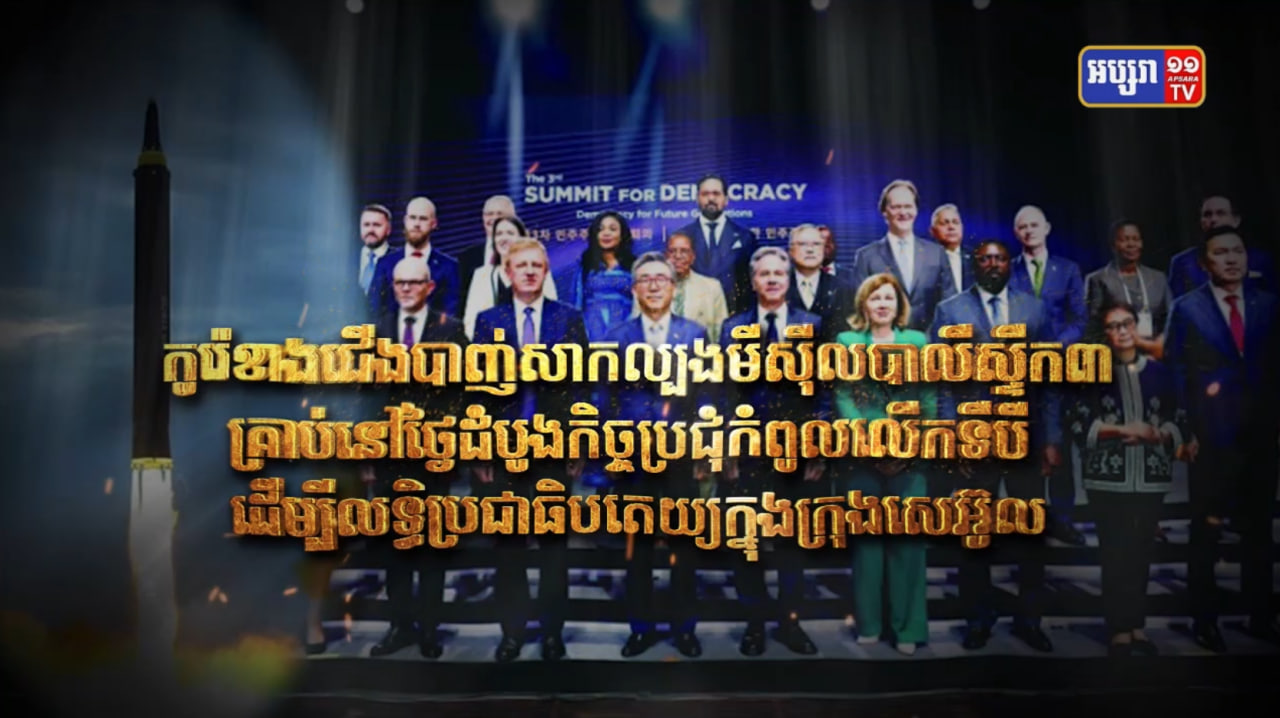 កូរ៉េខាងត្បូង បាននិងកំពុងធ្វើជាម្ចាស់ផ្ទះ នៃកិច្ចប្រជុំកំពូលលើកទីបី នៃលទ្ធិប្រជាធិបតេយ្យ។ ក្នុងថ្ងៃដំបូងទី១៨មីនា នៃការបើកកិច្ចប្រជុំកំពូល ដែលមានការចូលរួមពីរដ្ឋមន្ត្រីការបរទេសអាមេរិក, កូរ៉េខាងជើង បានបាញ់មីស៊ីលបាលីស្ទីក រយៈចម្ងាយខ្លីចំនួន ៣គ្រាប់ ចូលក្នុងដែនទឹក នៃសមុទ្ទជប៉ុន។ លោក ម៉ារ យ៉ារិទ្ធិ រាយការណ៍ជុំវិញបញ្ហានេះ