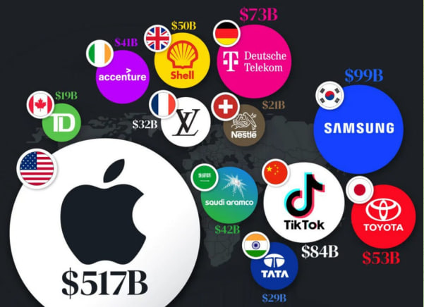 ក្រុមហ៊ុន ដែលមានតម្លៃម៉ាក (brand) ថ្លៃជាងគេក្នុងប្រទេសនានា រួមមាន៖