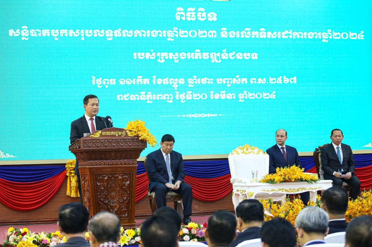 (ភ្នំពេញ)៖ សម្តេចធិបតី ហ៊ុន ម៉ាណែត ណែនាំឱ្យគ្រប់ក្រសួង-ស្ថាប័នពាក់ព័ន្ធ ចូលរួម ទប់ស្កាត់ឱ្យបាន រាល់សកម្មភាពដឹកជញ្ជូនលើសទម្ងន់កម្រិតកំណត់ ។ សម្តេចមហាបវរ ធិបតី នាយករដ្ឋមន្ត្រី នៃព្រះរាជាណាចក្រកម្ពុជា បានថ្លែងណែនាំដូច្នេះក្នុងពិធីបិទ សន្និបាត បូក សរុបលទ្ធផលការងារឆ្នាំ២០២៣ និងលើកទិសដៅការងារឆ្នាំ២០២៤ របស់ក្រសួងអភិវឌ្ឍន៍ជនបទ នារសៀលថ្ងៃទី២០ ខែមីនា ឆ្នាំ២០២៤ ។