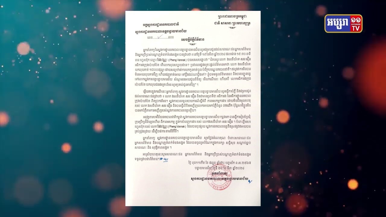 សេចក្តីបំភ្លឺព័ត៌មានរបស់ស្នងការដ្ឋាននគរបាលខេត្តថ្ងៃទី២០ មីនា ឆ្នាំ២០២៤ បានសរសេរថា គេបានកោះហៅអធិការរងនគរបាលឈ្មោះ សន ធឿន ដែលត្រូវបានគេចោទប្រកាន់នោះ ដើម្បីធ្វើការបកស្រាយបំភ្លឺ។ ប៉ុន្តែអធិការរងនគរបាលរួបនោះ បានបដិសេធមិនបង្ហាញខ្លួនចំនួន ២លើករួចមកហើយ។
