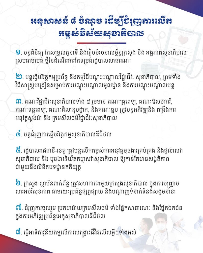 អនុសាសន៍ ៨ ចំណុច ដើម្បីជំរុញការលើកកម្ពស់វិស័យសុខាភិបាលOne-Minuteព័ត៌មានជាតិអត្ថបទដោយ៖AMS OneMinute #ams1minute AMS OneMinuteអត្ថបទមុនអត្ថបទបន្ទាប់