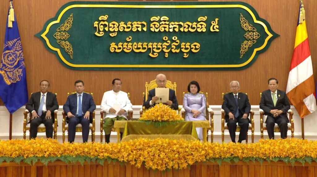 ព្រះមហាក្សត្រ ជាទីគោរពសក្ការៈដ៏ខ្ពង់ខ្ពស់បំផុត ប្រោសព្រះរាជទាន ព្រះរាជសុន្ទរកថា ទៅកាន់សម័យប្រជុំដំបូងព្រឹទ្ធសភា នីតិកាលទី៥។
