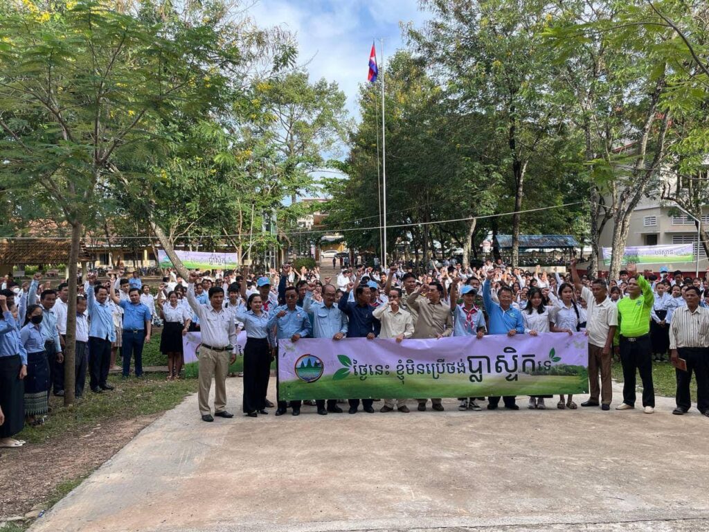 (ភ្នំពេញ)៖ គិតចាប់ពីថ្ងៃទី១ ខែកញ្ញា ឆ្នាំ២០២៣ ដល់ថ្ងៃទី៣១ ខែមីនា ឆ្នាំ២០២៤ ខេត្តប្រ ជា ជនសរុបនៅទូទាំងប្រទេសជាង ៧លាននាក់ ក្នុងនោះសិស្សានុសិស្ស មាន ចំនួនកើន ឡើង ប្រមាណ ៣លាន ៤សែននាក់ ស្មើនឹងប្រមាណ ៩៦ភាគរយ នៃចំនួន សិស្សសរុប ទូ ទាំង ប្រទេស បានចូលរួមយុទ្ធនាការកាត់បន្ថយការប្រើប្រាស់ប្លាស្ទិក ក្រោម ប្រធានបទ «ថ្ងៃនេះ ខ្ញុំមិនប្រើថង់ប្លាស្ទិកទេ» ។