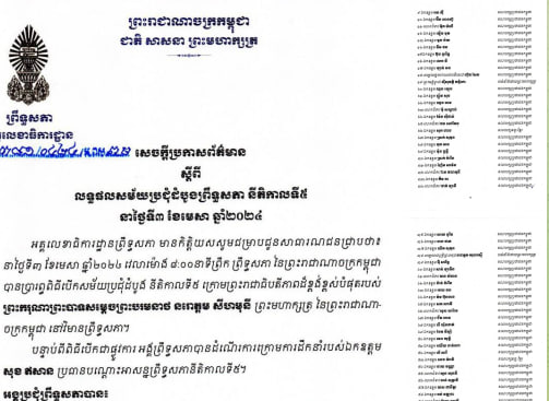 លទ្ធផលសម័យប្រជុំដំបូងព្រឹទ្ធសភា នីតិកាលទី៥ នាថ្ងៃទី០៣ មេសា ២០២៤One-Minuteព័ត៌មានជាតិអត្ថបទដោយ៖AMS OneMinute #ams1minute AMS OneMinuteអត្ថបទមុនអត្ថបទបន្ទាប់