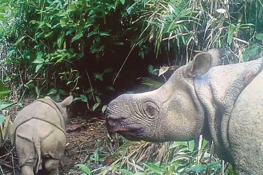 កូនសត្វរមាសចាវ៉ានដែលគេមិនទាន់ស្គាល់ភេទមួយក្បាលនេះ ត្រូវបានគេឃើញដើរជាមួយមេរមាសនៅក្នុងឧទ្យានជាតិ ដែលជាជម្រកព្រៃចុងក្រោយបង្អស់របស់សត្វរមាសចាវ៉ាន។