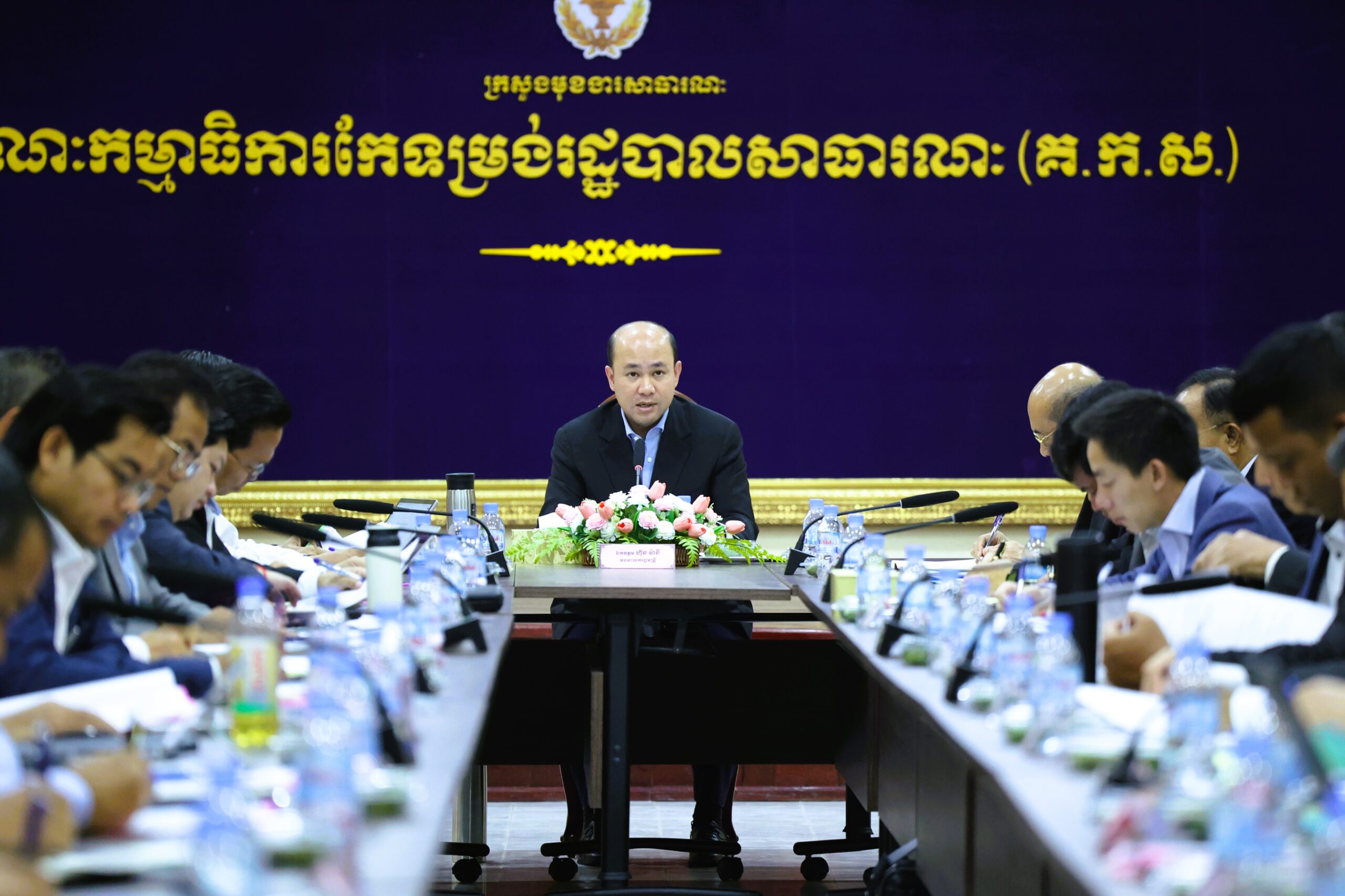 ភ្នំពេញ៖ ឯកឧត្តម ហ៊ុន ម៉ានី ឧបនាយករដ្ឋមន្ត្រី រដ្ឋមន្ត្រីក្រសួងមុខងារសាធារណៈ និងជាប្រធានគណៈកម្មការប្រឡងប្រជែងជ្រើសរើសមន្ត្រីរាជការស៊ីវិល កំពុងដឹកនាំ កិច្ចប្រជុំពិនិត្យវឌ្ឍនភាពការងារ នៃដំណើរការការរៀបចំការប្រឡង ប្រជែងជ្រើសរើសគ្រូបង្រៀនសម្រាប់បង្រៀននៅអនុវិទ្យាល័យ ឱ្យចូលបម្រើការងារក្នុងក្របខណ្ឌគ្រូបង្រៀននៃក្រសួងអប់រំ យុវជន និងកីឡា នារសៀលថ្ងៃទី១១ ខែមេសា ឆ្នាំ២០២៤ នៅសាលាភូមិន្ទរដ្ឋបាល។