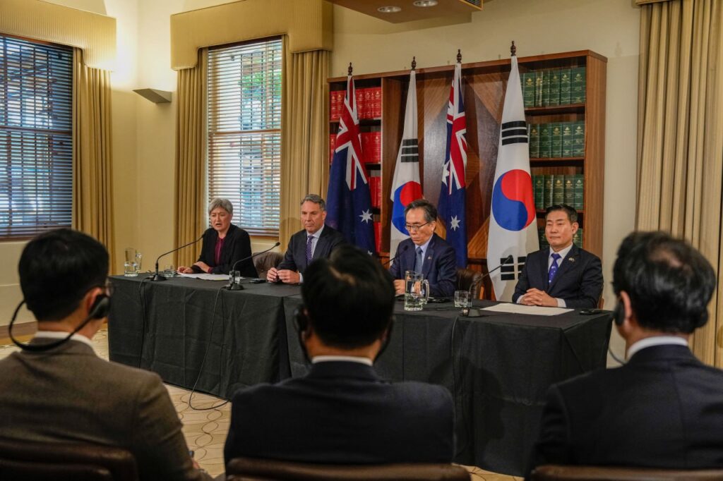 រដ្ឋមន្ត្រីការពារជាតិកូរ៉េខាងត្បូង លោក Shin Won-sik បាននិយាយថា ក្នុងអំឡុងកិច្ចប្រជុំថ្ងៃនេះ យើងក៏បានពិភាក្សាគ្នាអំពីលទ្ធភាពនៃការចាប់ដៃគូជាមួយសម្ព័នភាព AUKUS ដែលផ្តោតលើសសរស្តម្ភទីពីរ នោះគឺកិច្ចព្រមព្រៀងដែលផ្តោតលើការអភិវឌ្ឍអាវុធល្បឿនលឿន, យន្តហោះគ្មានមនុស្សបើក និងបច្ចេកវិទ្យាទំនើបផ្សេងទៀត។