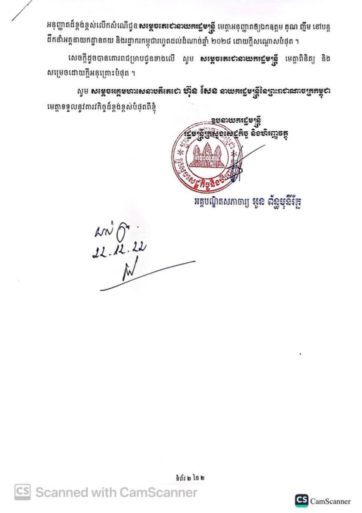 សម្តេចតេជោ ហ៊ុន សែន បានបន្តថា មុនដំបូងសម្តេចសម្រេចឱ្យចូលនិវត្តន៍ត្រឹមឆ្នាំ២០២៥ តែក្រោយមកតាមសំណើរឯកឧត្តម អូន ព័ន្ធមុនីរ័ត្ន និងពិនិត្យលើភាពចាំបាច់ នៃកំណែទម្រង់គយ និងគុណសម្បត្តិរបស់សាមីខ្លួន សម្តេចបានសម្រេចឱ្យឯកឧត្តម គុណ ញឹម ចូលនិវត្តន៍នៅឆ្នាំ២០២៨។ បន្ថែមលើនោះសម្តេចក៏បានសម្រេចឱ្យអគ្គនាយករងពីររូបទៀត បានចូលនិវត្តន៍នៅឆ្នាំ២០២៨ផងដែរ ដើម្បីក្លាយជាក្រុមដឹកនាំបន្តកំណែទម្រង់គយប្រកបដោយជោគជ័យ។ សូមមើលឯកសារជូនភ្ជាប់ជាមួយដើម្បីមើលឱ្យឈប់ល្ងង់។ សូមពាក់វ៉ែនតាមើលផង ប្រសិនភ្នែកមិនល្អជៀសវាងមើលច្រឡំថ្ងៃខែឆ្នាំ។ ចំណែកវីដេអូជាដំណាក់ទីមួយដែលសម្តេចលើកឡើងខាងលើដែលមិនអាចយកមកជំនួសឯកសារនេះបានឡើយ។ សម្តេចតេជោ ហ៊ុន សែន បានចោទសួរថា ហេតុអ្វីបានពួកអ្នកមកវាយប្រហារប្រពន្ធ ហ៊ុន ម៉ាណែត ដែលជាកូនប្រសារខ្ញុំទៅវិញ ឬមកពីល្ងង់?៕