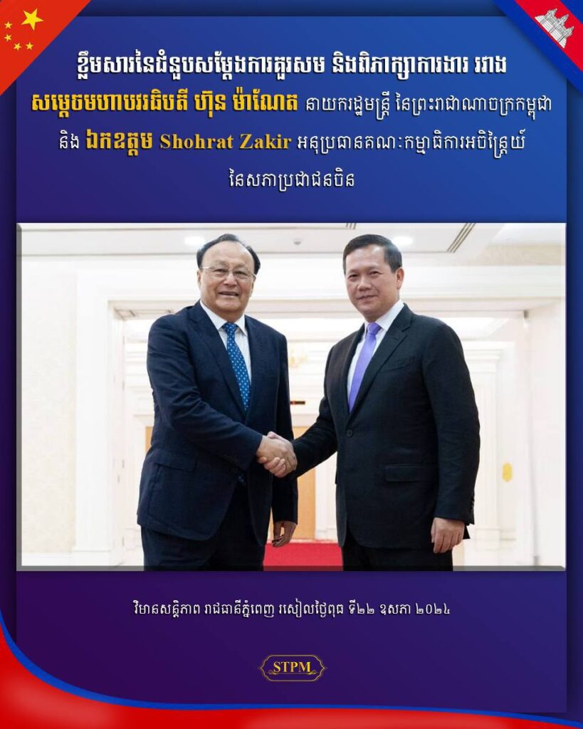 អនុប្រធានគណៈកម្មាធិការអចិន្ត្រៃយ៍ នៃសភាតំណាងប្រជាជនចិន Shohrat Zakir៖ “កម្ពុជា ពិសេស រាជធានីភ្នំពេញមានការអភិវឌ្ឍរីកចម្រើនយ៉ាងឆាប់រហ័ស និងមានភាពស្រស់ស្អាត”។