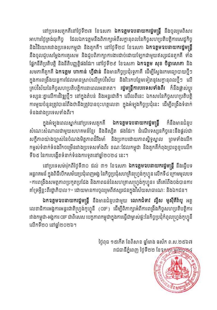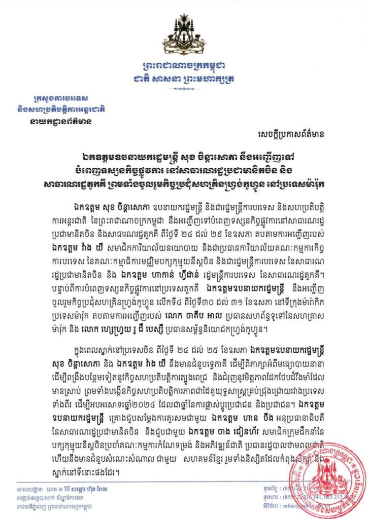 ប្រមុខការទូតកម្ពុជានឹងអញ្ជើញទៅបំពេញទស្សនកិច្ចផ្លូវការនៅចិន និងតួកគី ព្រមទាំងចូលរួមកិច្ចប្រជុំសហគ្រិនហ្រ្វង់កូហ្វូន នៅប្រទេសម៉ារ៉ុកOne-Minuteព័ត៌មានជាតិអត្ថបទដោយ៖AMS OneMinute #ams1minute AMS OneMinuteអត្ថបទមុនអត្ថបទបន្ទាប់