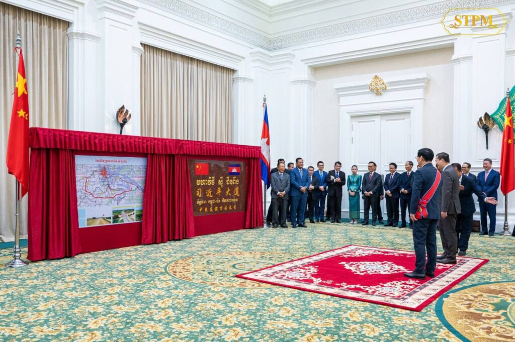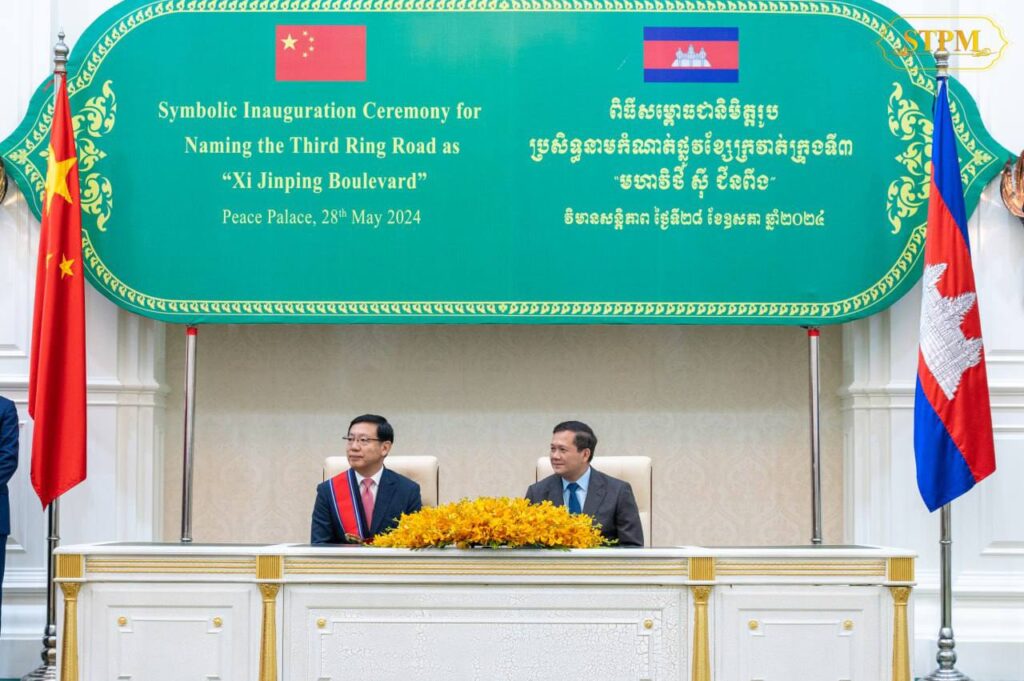 សម្តេចធិបតី ហ៊ុន ម៉ាណែត និងឯកអគ្គរដ្ឋទូតចិន អញ្ជើញសម្ពោធជានិមិត្តរូបប្រសិទ្ធនាមកំណាត់ផ្លូវខ្សែក្រវាត់ក្រុងទី៣ ជាមហាវិថី ស៊ី ជីនពីង