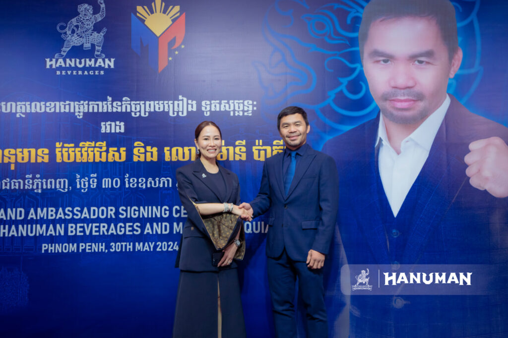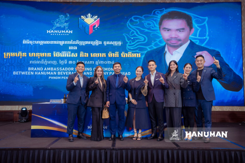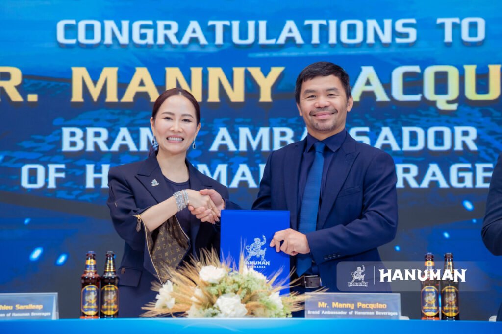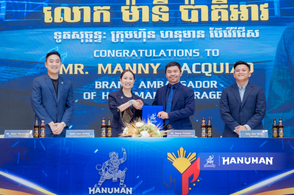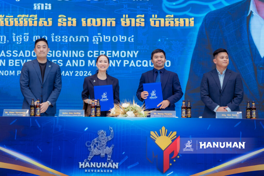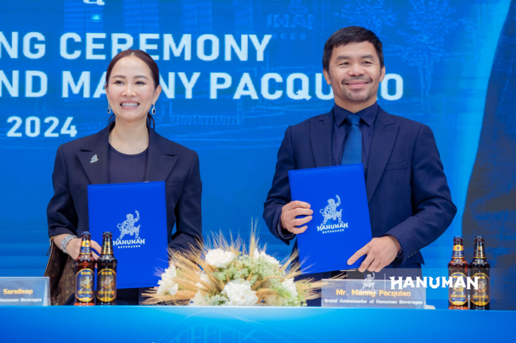 ភ្នំពេញ ៖ ក្រុមហ៊ុន ហនុមាន ប៊ែវើរីជីស (Hanuman Beverages) បានរៀបចំពិធីចុះហត្ថលេខាជាផ្លូវការនៃកិច្ចព្រមព្រៀងជាមួយកីឡាករប្រដាល់លំដាប់ពិភពលោក ម៉ានីប៉ាគីអាវ (Manny Pacquiao) នាល្ងាចថ្ងៃទី៣០ ខែឧសភា ឆ្នាំ២០២៤ ក្នុងការចូលរួមលើកស្ទួយវិស័យកីឡាប្រដាល់គុនខ្មែរ លើឆាកអន្តរជាតិ ។ ភាពជាដៃគូនេះ គឺជាព្រឹត្តិការណ៍ដ៏សំខាន់មួយនៅក្នុងដំណើរវិវឌ្ឍន៍របស់ក្រុមហ៊ុន ហនុមាន ប៊ែវើរីជីស ឆ្ពោះទៅរកការទទួលស្គាល់ និងឧត្តមភាពជា