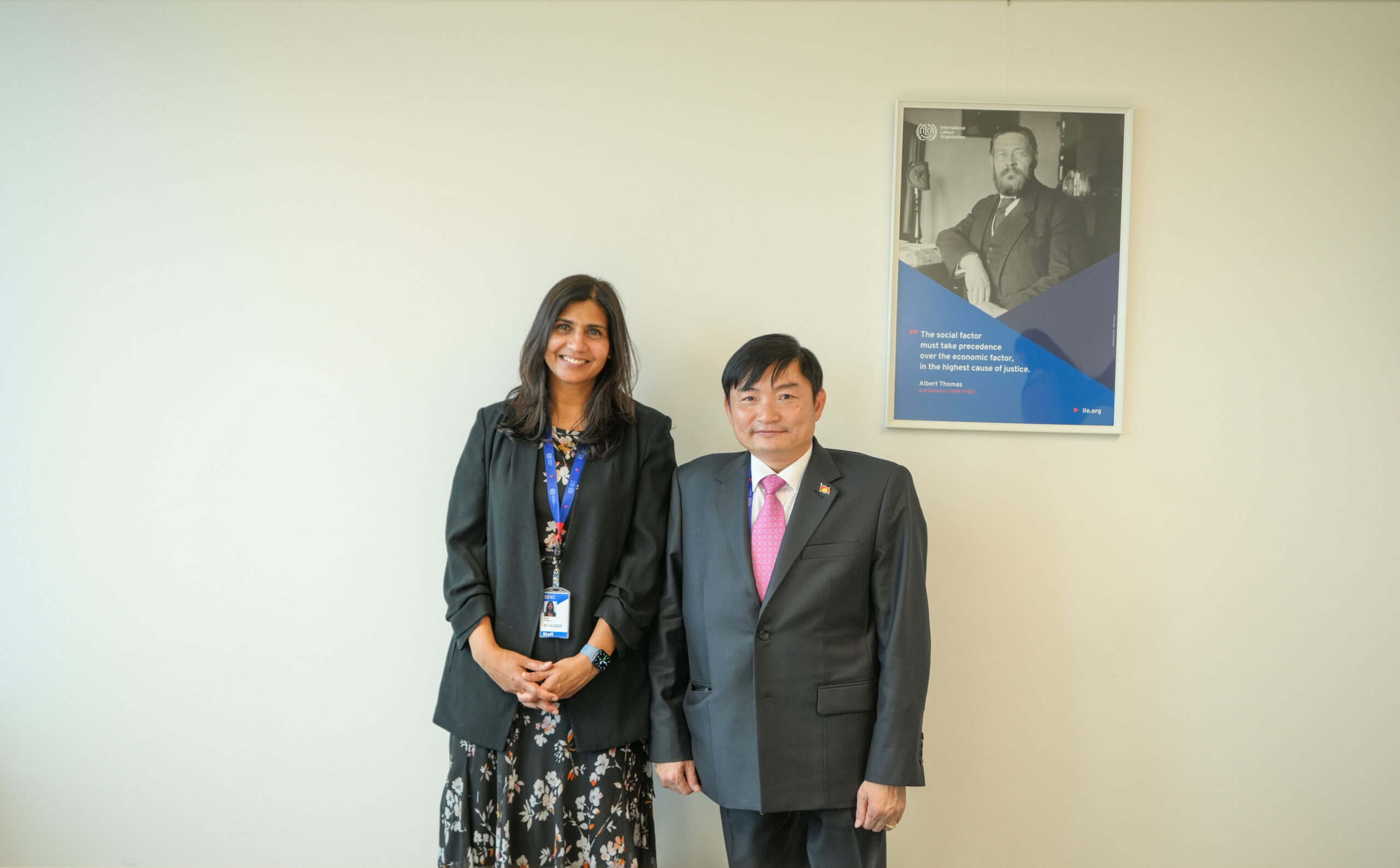 ស្វីស៖ ឯកឧត្តម ហេង សួរ រដ្ឋមន្ត្រីក្រសួងការងារ និងបណ្តុះបណ្តាលវិជ្ជាជីវៈ បានជួបពិភាក្សាការងារជាមួយលោកស្រី Roopa Nair ប្រធានកម្មវិធីការងារកាន់តែប្រសើរ(Better Work)នៃអង្គការអន្តរជាតិខាងការងារ (ILO)កាលពីថ្ងៃអង្គារ ទី១១ ខែមិថុនាម្សិលមិញម៉ោងនៅប្រទេសស្វីសក្នុងខណៈដែលឯកឧត្តមចូលរួមកិច្ចប្រជុំប្រចាំឆ្នាំរបស់អង្គការអន្តរជាតិខាងការងារ(ILO)។