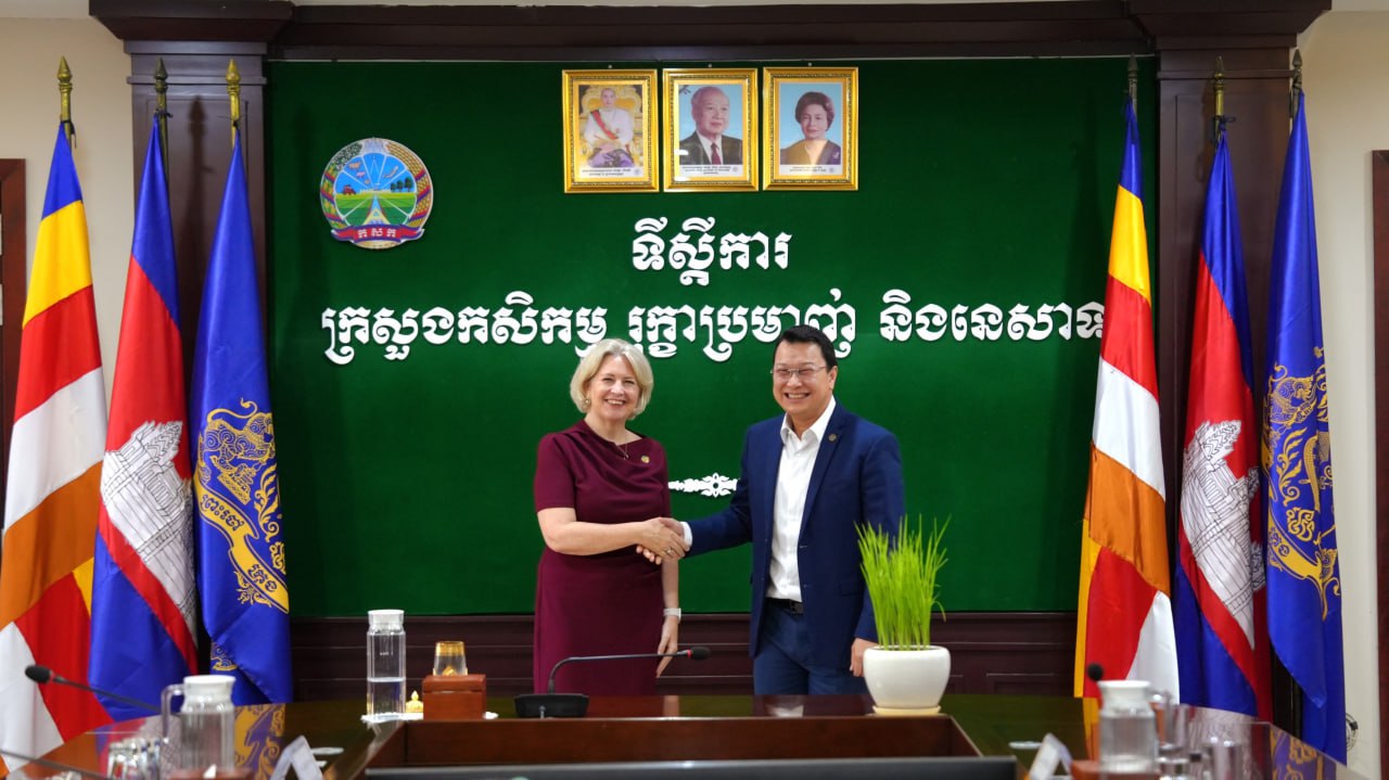 ភ្នំពេញ៖ ឯកឧត្តម ឌិត ទីណា រដ្ឋមន្ត្រីក្រសួងកសិកម្ម រុក្ខាប្រមាញ់ និងនេសាទ កាលពីរសៀលថ្ងៃទី១១ ខែមិថុនា ឆ្នាំ២០២៤ បានទទួលជួប ពិភាក្សាការងារជាមួយលោកស្រី Beverly Posma នាយិកាប្រតិបត្តិនៃអង្គការ Grow Asia Partnership នៅទីស្តីការក្រសួងកសិកម្ម ។