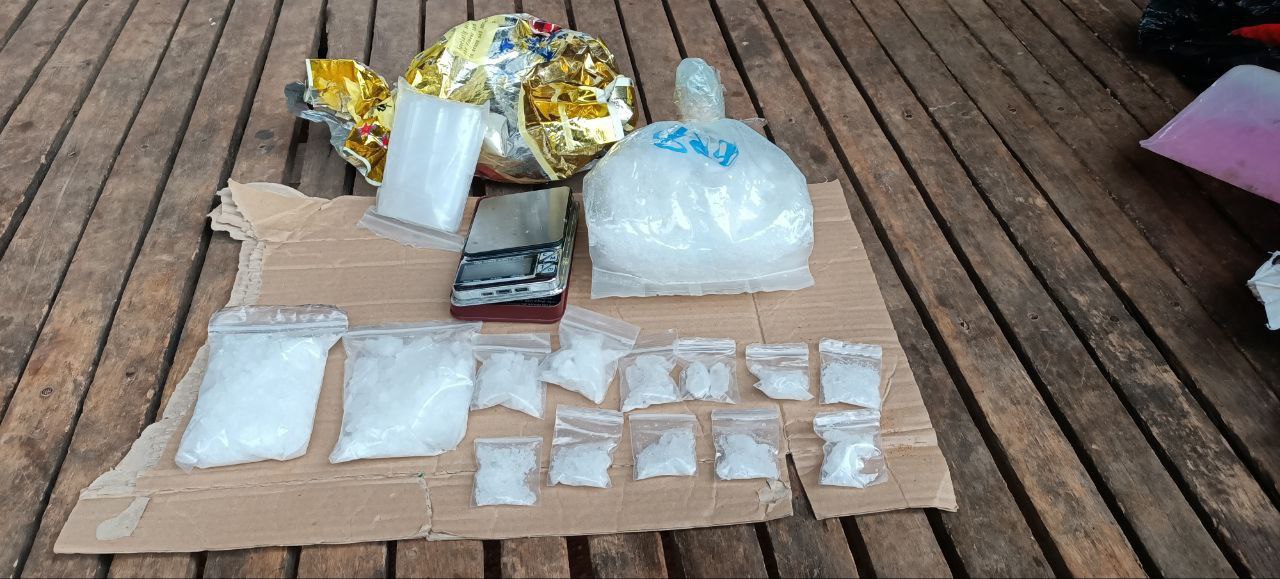ជាមួយនឹងការឃាត់ខ្លួន សមត្ថកិច្ចរកឃើញវត្ថុតាងថ្នាំញៀនចំនួន១៤កញ្ចប់ ធំ ៣កញ្ចប់ ទម្ងន់ជិតមួយគីឡូក្រាម ទូរសព្ទដៃពីរគ្រឿង ម៉ូតូមួយគ្រឿង និងសម្ភារៈវេចខ្ចប់មួយចំនួនទៀត៕