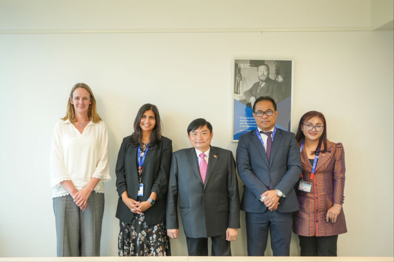 (ស្វីស)៖ ឯកឧត្តម ហេង សួរ រដ្ឋមន្ត្រីក្រសួងការងារ និងបណ្តុះបណ្តាលវិជ្ជាជីវៈ បានជួបពិភាក្សាការងារជាមួយលោកស្រី Roopa Nair ប្រធានកម្មវិធីការងារកាន់តែប្រសើរ(Better Work)នៃអង្គការអន្តរជាតិខាងការងារ (ILO) នៅថ្ងៃទី១១ ខែមិថុនា ឆ្នាំ២០២៤ ខណៈដែលឯកឧត្តមចូលរួមកិច្ចប្រជុំប្រចាំឆ្នាំរបស់អង្គការអន្តរជាតិខាងការងារ(ILO) នៅប្រទេសស្វីស។