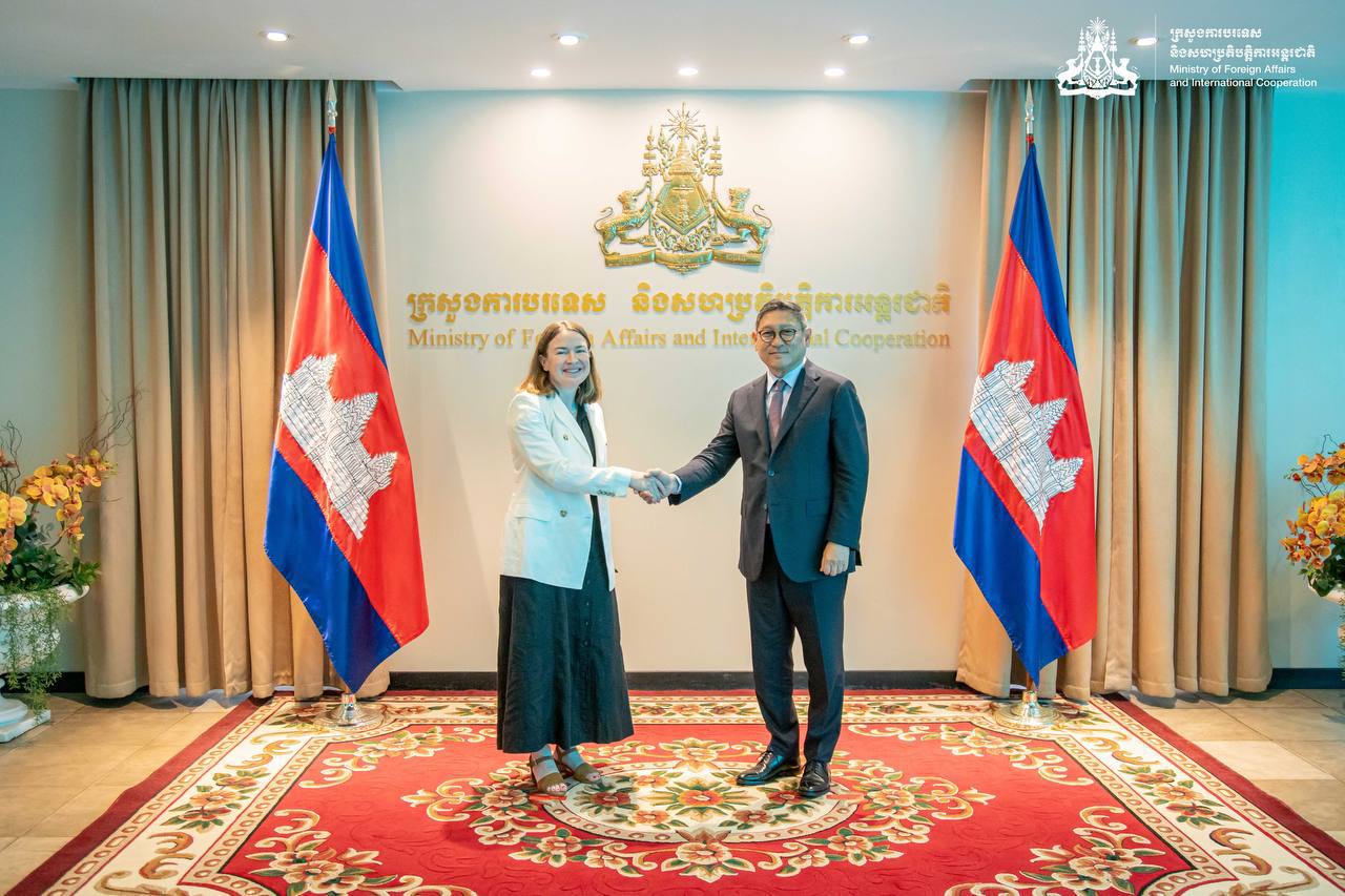 ឯកឧត្តម សុខ ចិន្តាសោភា ឧបនាយករដ្ឋមន្ត្រី និងជារដ្ឋមន្ត្រីការបរទេស និងសហប្រតិបត្តិការអន្តរជាតិ បានអនុញ្ញាតឱ្យ លោកជំទាវ Deirdre Ní Fhallúin ឯកអគ្គរដ្ឋទូតវិសាមញ្ញ និងពេញសមត្ថភាព នៃសាធារណរដ្ឋអៀរឡង់ ប្រចាំព្រះរាជាណាចក្រកម្ពុជា ដែលមាននិវេសនដ្ឋាននៅទីក្រុងហាណូយ ចូលជួបសម្តែងការគួរសម នៅទីស្តីការក្រសួង នៅថ្ងៃទី១៣ ខែមិថុនា ឆ្នាំ២០២៤។