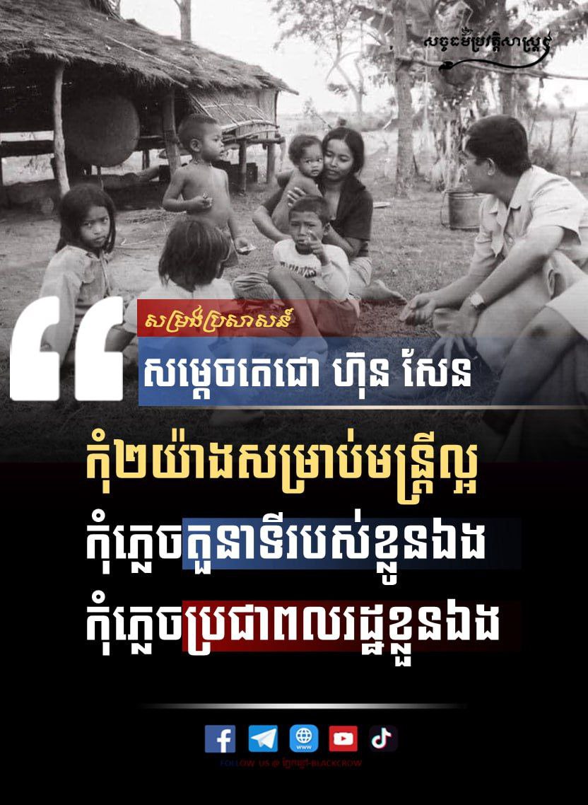 សម្រង់ប្រសាសន៍សម្ដេចតេជោ ហ៊ុន សែន៖ កុំភ្លេចតួនាទីរបស់ខ្លួនឯង កុំភ្លេចប្រជាពលរដ្ឋខ្លួនឯងដំណើររបស់កម្ពុជាសច្ចធម៌ប្រវត្តិសាស្ត្រអត្ថបទដោយ៖លី ប៊ុនហេង - Ly Bunheng #សច្ចធម៌ប្រវត្ដិសាស្រ្ដ #ព្រះរាជាណាចក្រកម្ពុជា #សម្រង់ប្រសាសន៍ #សម្ដេចតេជោហ៊ុនសែន Facebook Page: សច្ចធម៌ប្រវត្ដិសាស្រ្ដTo all social media លី ប៊ុនហេង - Ly Bunhengលី ប៊ុនហេង ប្រធានផ្នែកផ្សព្វផ្សាយ នៃសច្ចធម៌ប្រវត្តិសាស្រ្ដអត្ថបទមុនអត្ថបទបន្ទាប់