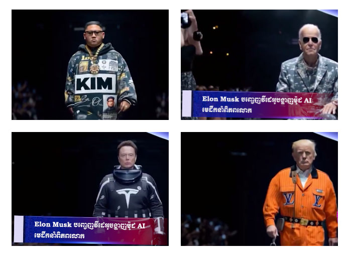 បរទេស៖ លោកមហាសេដ្ឋីពិភពលោក Elon Musk នាពេលថ្មីៗនេះ បានបញ្ចេញវីដេអូផ្សព្វផ្សាយ នៅលើបណ្តាញសង្គម បង្ហាញពីការដើរម៉ូត AI ឬ បញ្ញាសិប្បនិម្មត ដែលចម្លងចេញពីរូបរាងពិតៗ របស់មេដឹកនាំពិភពលោក និង អ្នកជំនួញលើបច្ចេកវិទ្យា លំដាប់កំពូលៗ។ នេះបើតាមគេហទំព័រ Bussiness Standard។