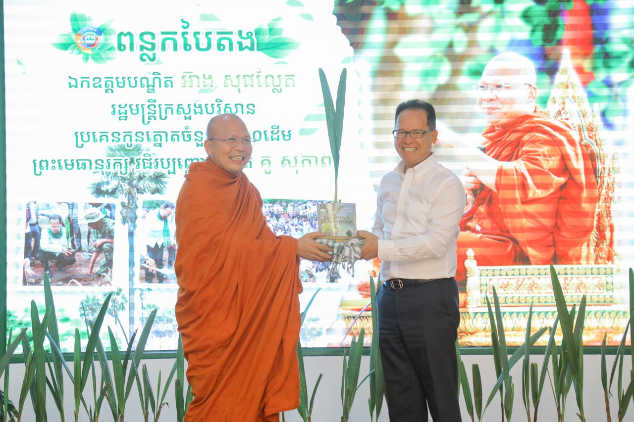 រដ្ឋមន្រ្តីក្រសួងបរិស្ថាន ប្រគេនកូនត្នោតចំនួន ១៥០០ដើម ដល់ព្រះគ្រូ បណ្ឌិត គូ សុភាព យកទៅដាំ ក្នុងយុទ្ធនាការ «ពន្លកបៃតង»