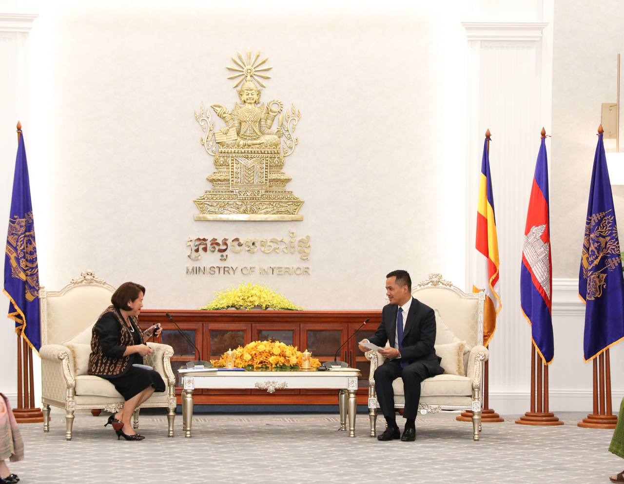 ភ្នំពេញ៖ ឯកឧត្តមអភិសន្តិបណ្ឌិត ស សុខា ឧបនាយករដ្ឋមន្ត្រី រដ្ឋមន្ត្រីក្រសួងមហាផ្ទៃ និងលោកស្រី Kristin Parco ប្រធានបេសកកម្មនៃអង្គការអន្តរជាតិ ទេសន្តរប្រវេសន៍ប្រចាំកម្ពុជា (IOM) បានផ្លាស់ប្ដូរមតិយោបល់គ្នាយ៉ាងស៊ីជម្រៅ អំពីកិច្ចសហប្រតិបត្តិការរវាងក្រសួងមហាផ្ទៃ និងអង្គការ IOM ក្នុងការងារលើកកម្ពស់និងគាំពារសិទ្ធិជនទេសន្តរប្រវេសន៍ ដោយភាគីទាំងពីរបានបង្ហាញការពេញចិត្តចំពោះលទ្ធផល នៃកិច្ចសហប្រតិបត្តិការជាបន្តបន្ទាប់។
