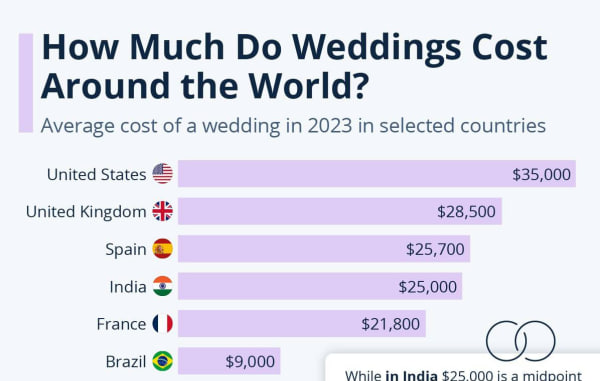 ការចំណាយទៅលើការរៀបអាពាហ៍ពិពាហ៍ជាមធ្យមនៅអាមេរិកមានតម្លៃ ៣៥ ០០០ ដុល្លារក្នុងឆ្នាំ២០២៣