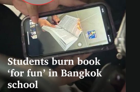 សិស្សថៃដុតសៀវភៅ ទុកជាការកម្សាន្ត ផ្ទុះការរិះគន់