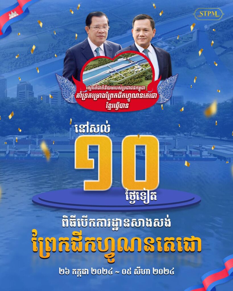 នៅសល់ ១០ ថ្ងៃទៀត ដល់ថ្ងៃបើកការដ្ឋានសាងសង់ ព្រែកជីកហ្វូណនតេជោOne-Minuteព័ត៌មានជាតិអត្ថបទដោយ៖AMS OneMinute ២៦ កក្កដា ២០២៤ – ០៥ សីហា ២០២៤ #ams1minute AMS OneMinuteអត្ថបទមុនអត្ថបទបន្ទាប់