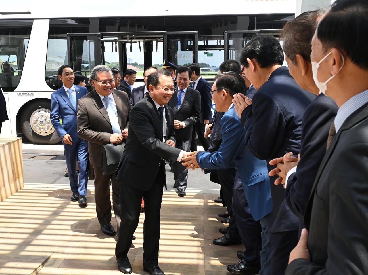 (ភ្នំពេញ)៖ នារសៀលថ្ងៃទី១០ ខែសីហា ឆ្នាំ២០២៤ ឯកឧត្តមសាស្ត្រាចារ្យ ឈាង រ៉ា រដ្ឋមន្ត្រីក្រសួងសុខាភិបាល និងគណៈប្រតិភូក្រសួងសុខាភិបាលកម្ពុជា បានធ្វើមាតុភូមិនិវត្តន៍ បន្ទាប់ពីបានចូលរួមកិច្ចប្រជុំរដ្ឋមន្ត្រីសុខាភិបាលអាស៊ានលើកទី១៦ និងកិច្ចប្រជុំពាក់ព័ន្ធនានា ដែលបានប្រព្រឹត្តិទៅពីថ្ងៃទី៥ ដល់ថ្ងៃទី៩ ខែសីហា ឆ្នាំ២០២៤ នៅទីក្រុងវៀងច័ន្ទ ប្រទេសឡាវ ដែលជាប្រធានប្តូរវេន និងជាម្ចាស់ផ្ទះ។