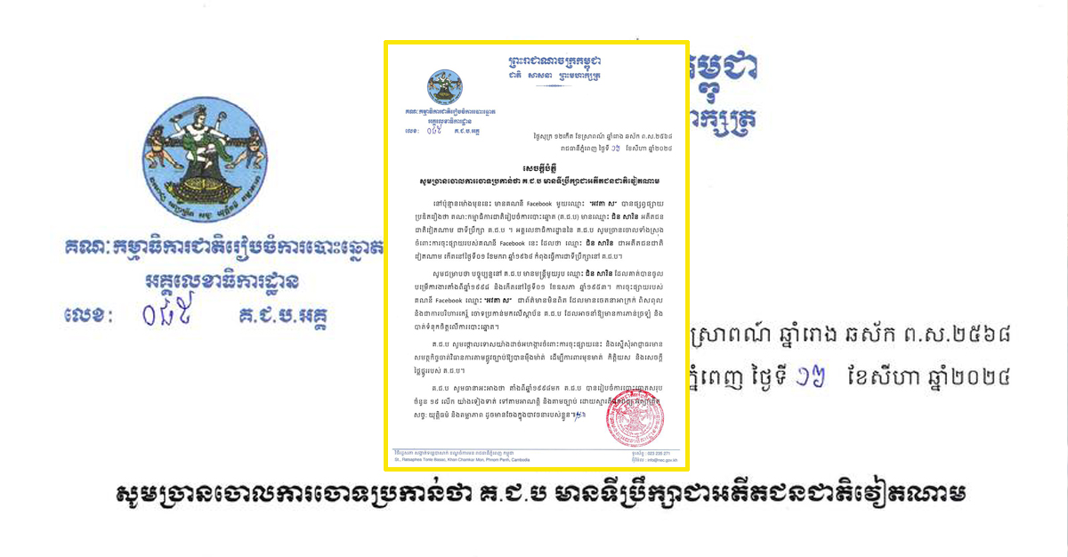 គ.ជ.ប ស្នើឱ្យសមត្ថកិច្ចចាត់វិធានការច្បាប់លើជនប្រឌិតព័ត៌មាន ថា គ.ជ.ប មានទីប្រឹក្សាជាអតីតជនជាតិវៀតណាម