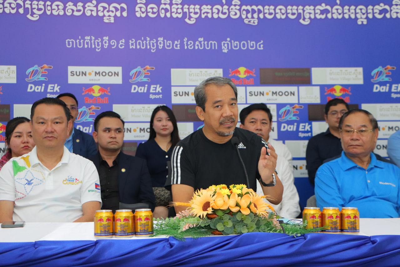 (ភ្នំពេញ)៖ ថ្ងៃទី១៦ ខែសីហា ឆ្នាំ២០២៤-ឯកឧត្ដម កែវ រ៉េមី ទេសរដ្ឋមន្ត្រី ប្រធានគណៈកម្មការសិទ្ធិមនុស្សកម្ពុជា និងជាប្រធានសហព័ន្ធកីឡាតេក្វាន់ដូ ITF កម្ពុជា បានលើកឡើងថា ៖«ខ្ញុំចង់ឃើញទង់ជាតិបង្ហោះឡើង និងភ្លេងជាតិខ្មែរបន្លឺឡើងម្តងទៀត ក្នុងការប្រកួតកីឡាតេក្វាន់ដូ ITF ជើងឯកអាស៊ី នៅប្រទេសឥណ្ឌា»។