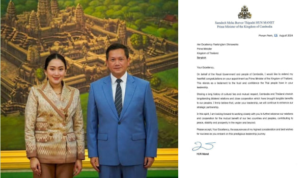 សម្តេចធិបតី ហ៊ុន ម៉ាណែត ផ្ញើសារអបអរសាទរជូន លោកស្រី Paetongtarn ដែលត្រូវបានតែងតាំងជា នាយករដ្ឋមន្ត្រីថ្មីរបស់ថៃOne-Minuteព័ត៌មានជាតិអត្ថបទដោយ៖AMS OneMinute ១៦ សីហា ២០២៤ #ams1minute AMS OneMinuteអត្ថបទមុនអត្ថបទបន្ទាប់