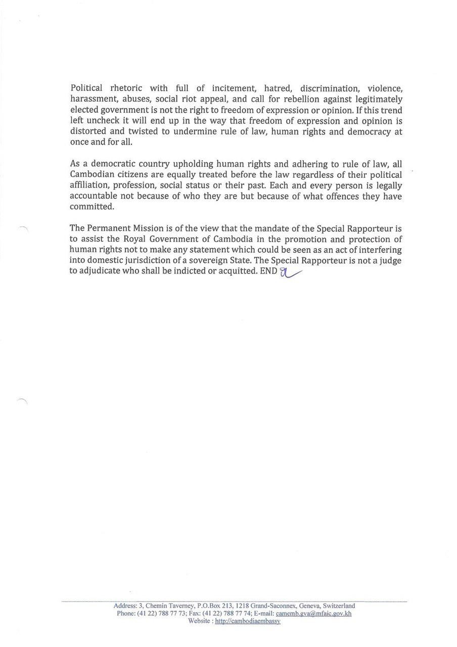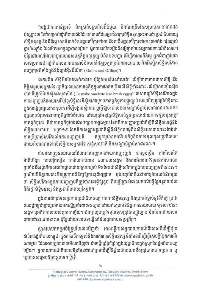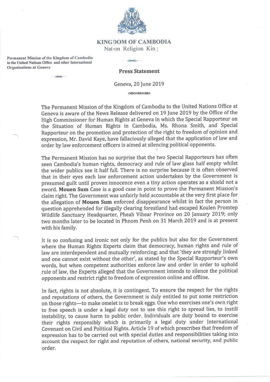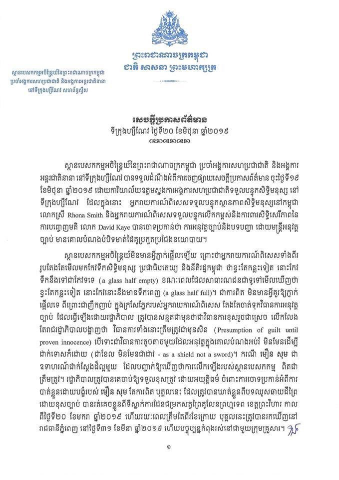 សេចក្តីប្រកាសព័ត៌មានរបស់ស្ថានបេសកកម្មអចិន្ត្រៃយ៍នៃព្រះរាជាណាចក្រកម្ពុជា ប្រចាំអង្គការសហប្រជាជាតិ និងអង្គការអន្តរជាតិនានា នៅទីក្រុងហ្ស៉ីណែវព័ត៌មានអត្ថបទដោយ៖Kien Sereyvuth Kien SereyvuthIT Technical Supportអត្ថបទមុនអត្ថបទបន្ទាប់